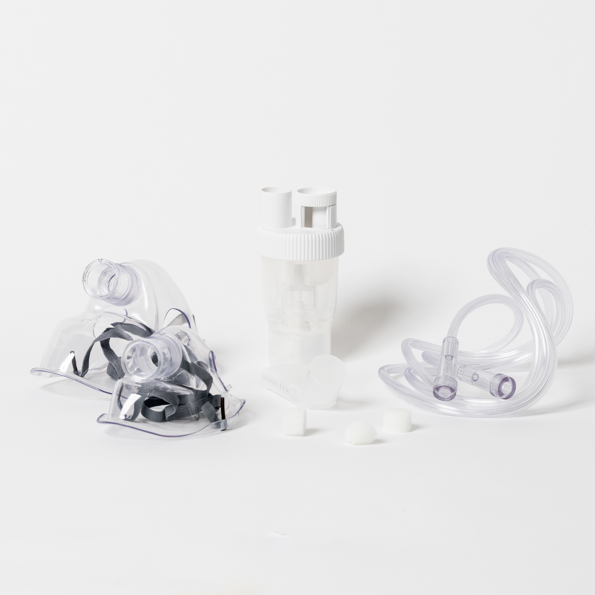 Contenuto del kit: 1 ampolla con regolatore di flusso, 2 mascherine (adulto e bambino), tubo dell’aria, filtri.